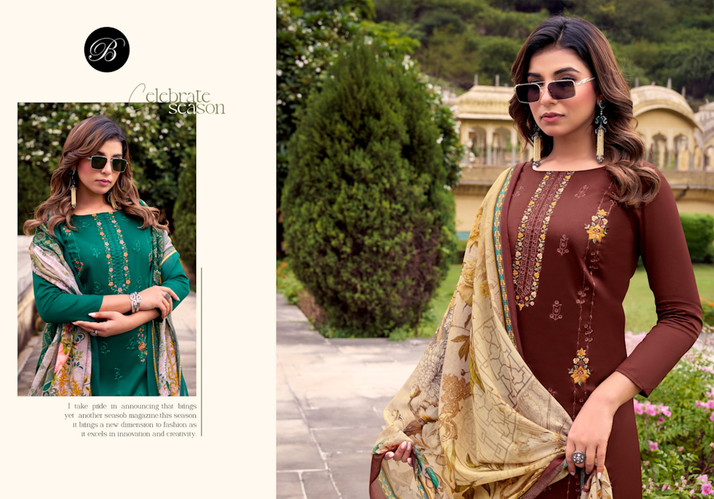 🔺Top: 100% Pure Heavy Jam with Designer Heavy Embroidery Work + Heavy Daman Boring Work with Scalloping (2.50 mtrs apx)