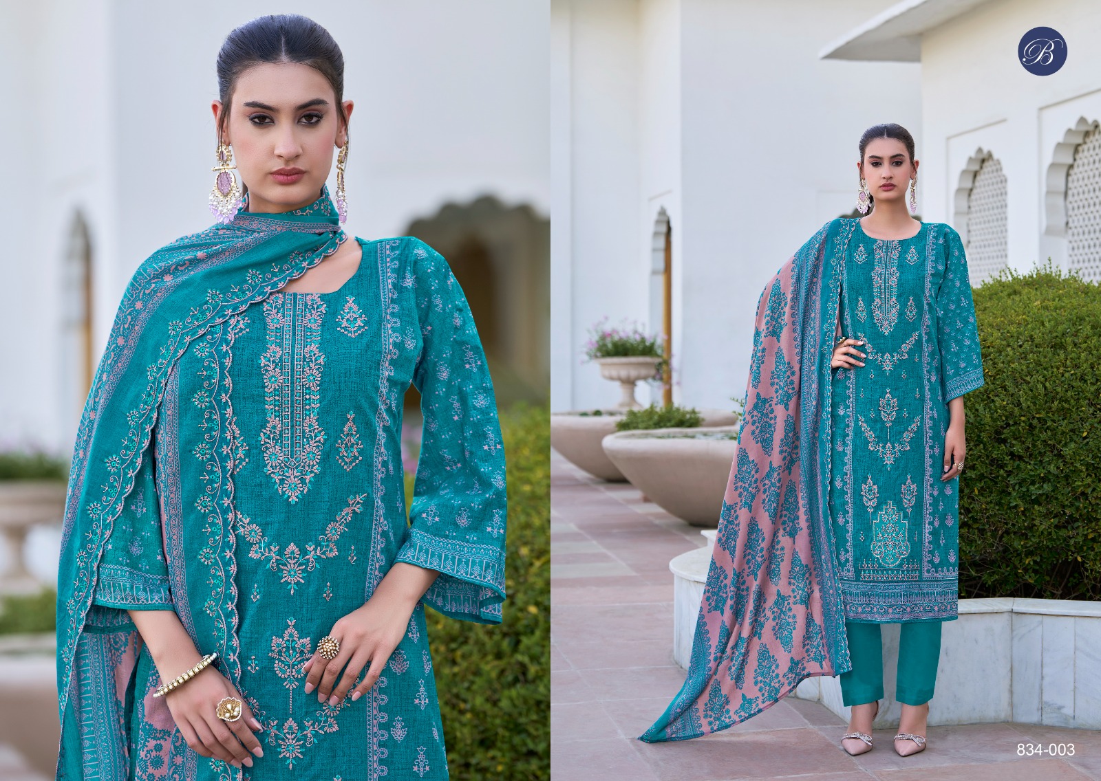 🔺Dupatta: *100% Pure Mal Mal Cotton with TWO SIDE HEAVY EMBROIDERY WORK + SCALLOPING* (2.30 mtrs apx)