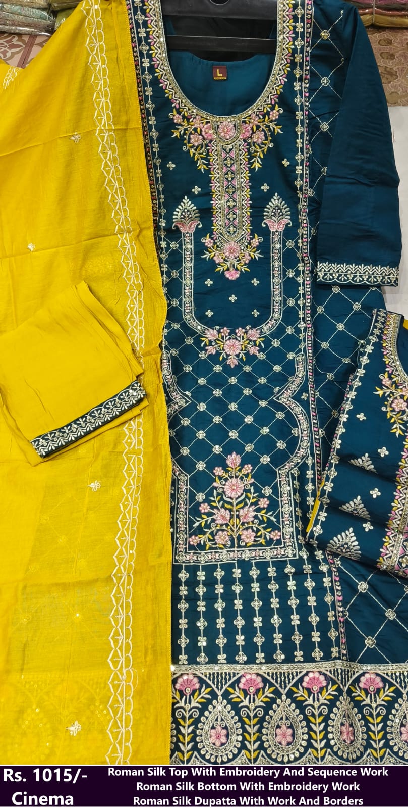Rs.1015 Roman Silk Top With Embroidery And Sequenc Work
