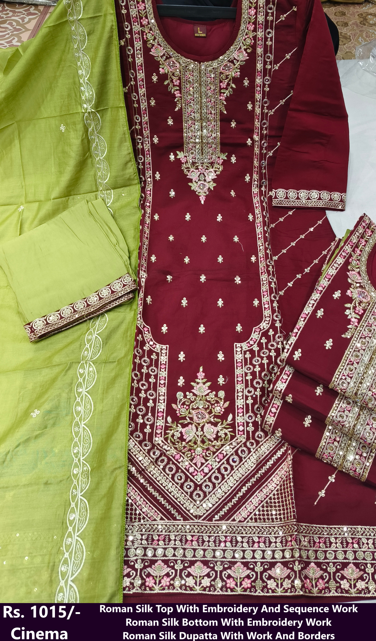 Rs.1015 Roman Silk Top With Embroidery And Sequenc Work