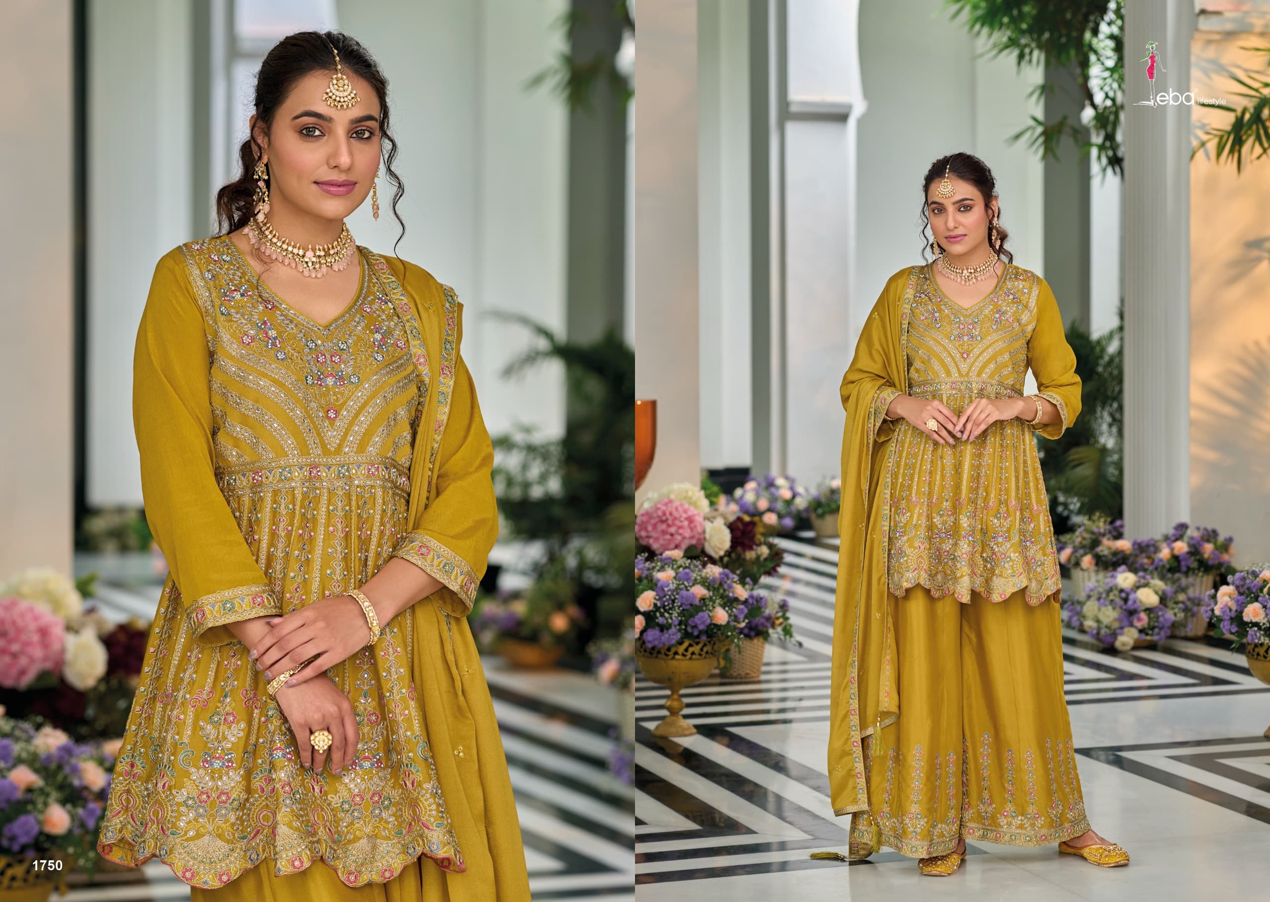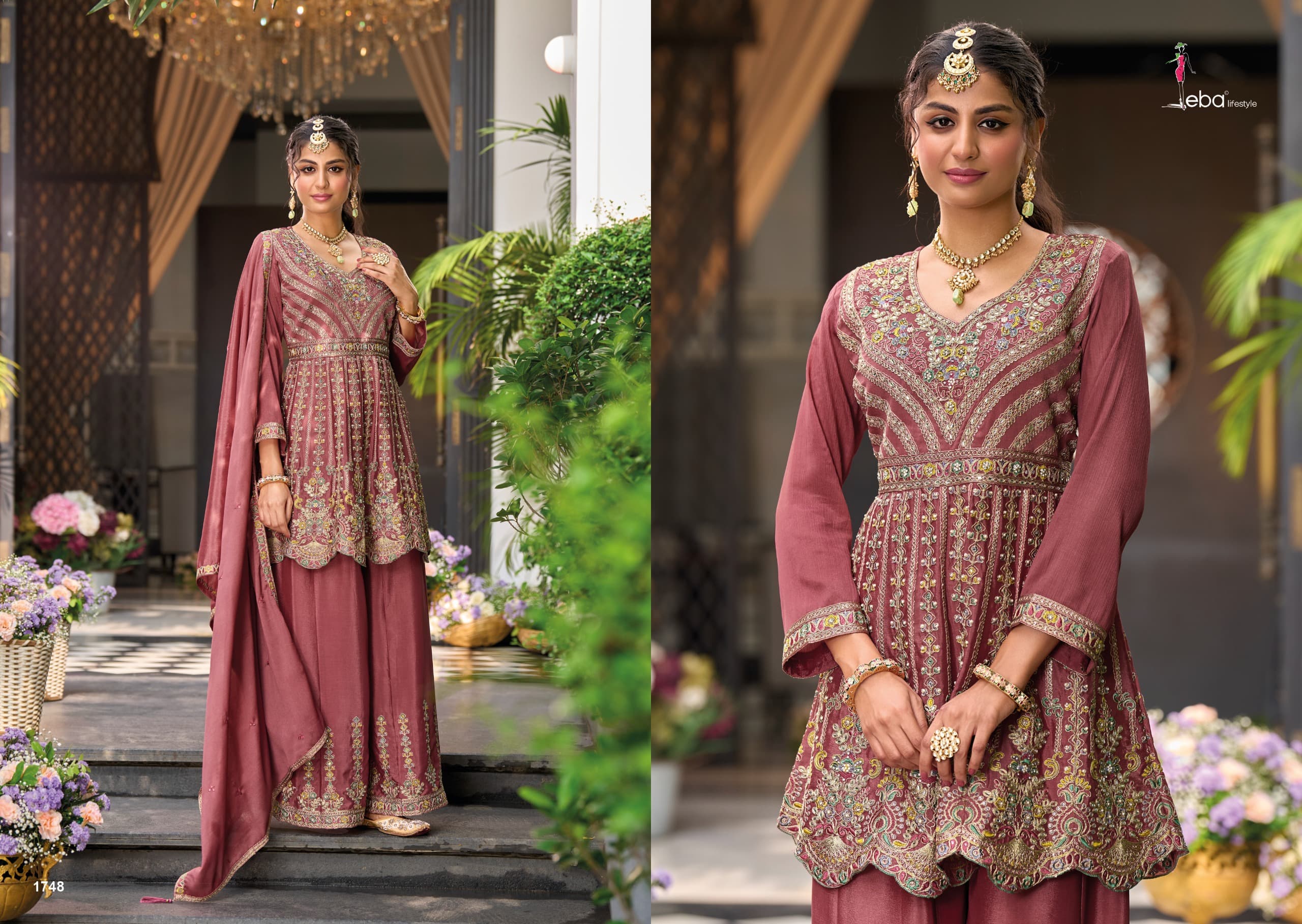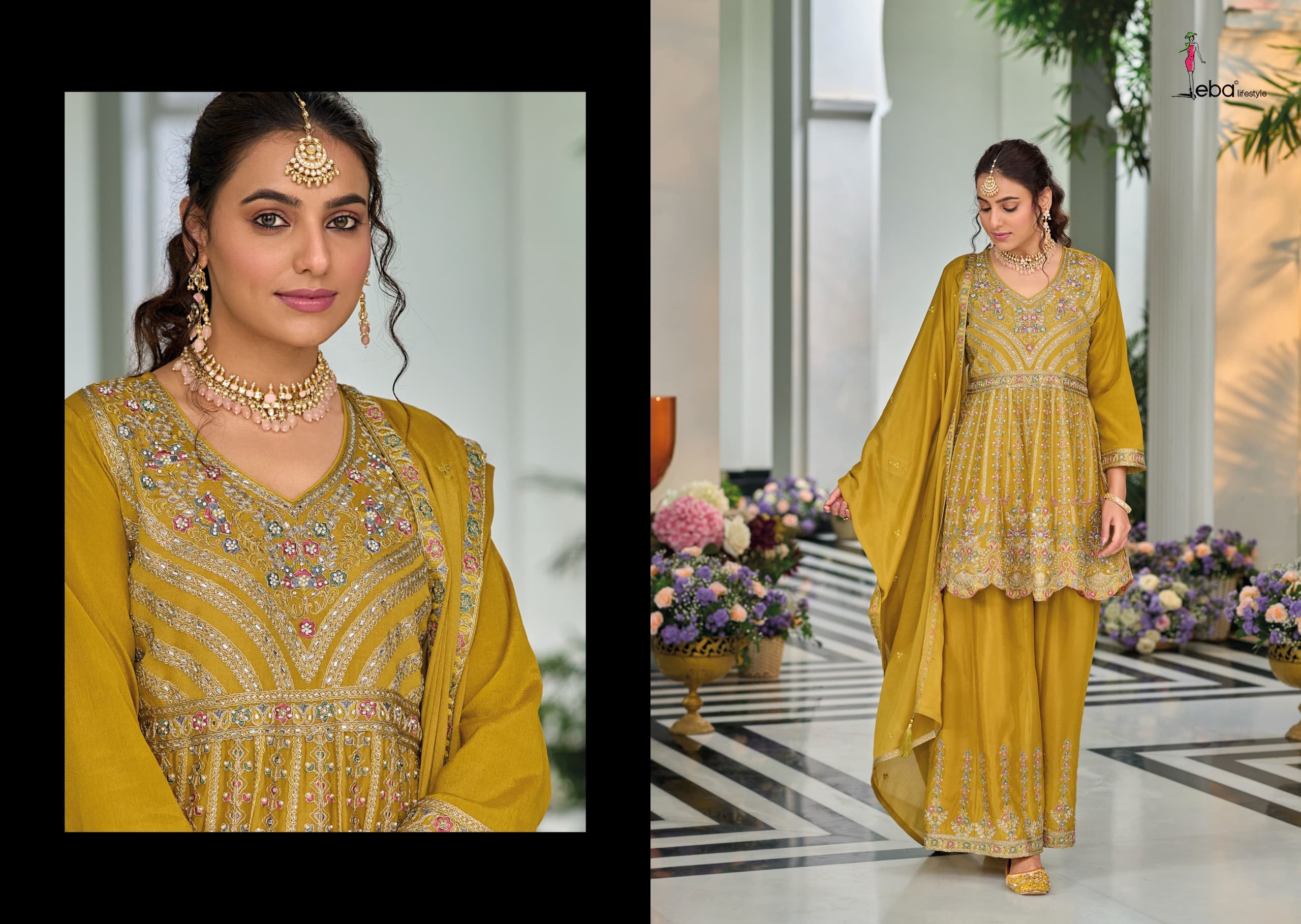 plazo - Hevy chinon embroidery work ( front &back)