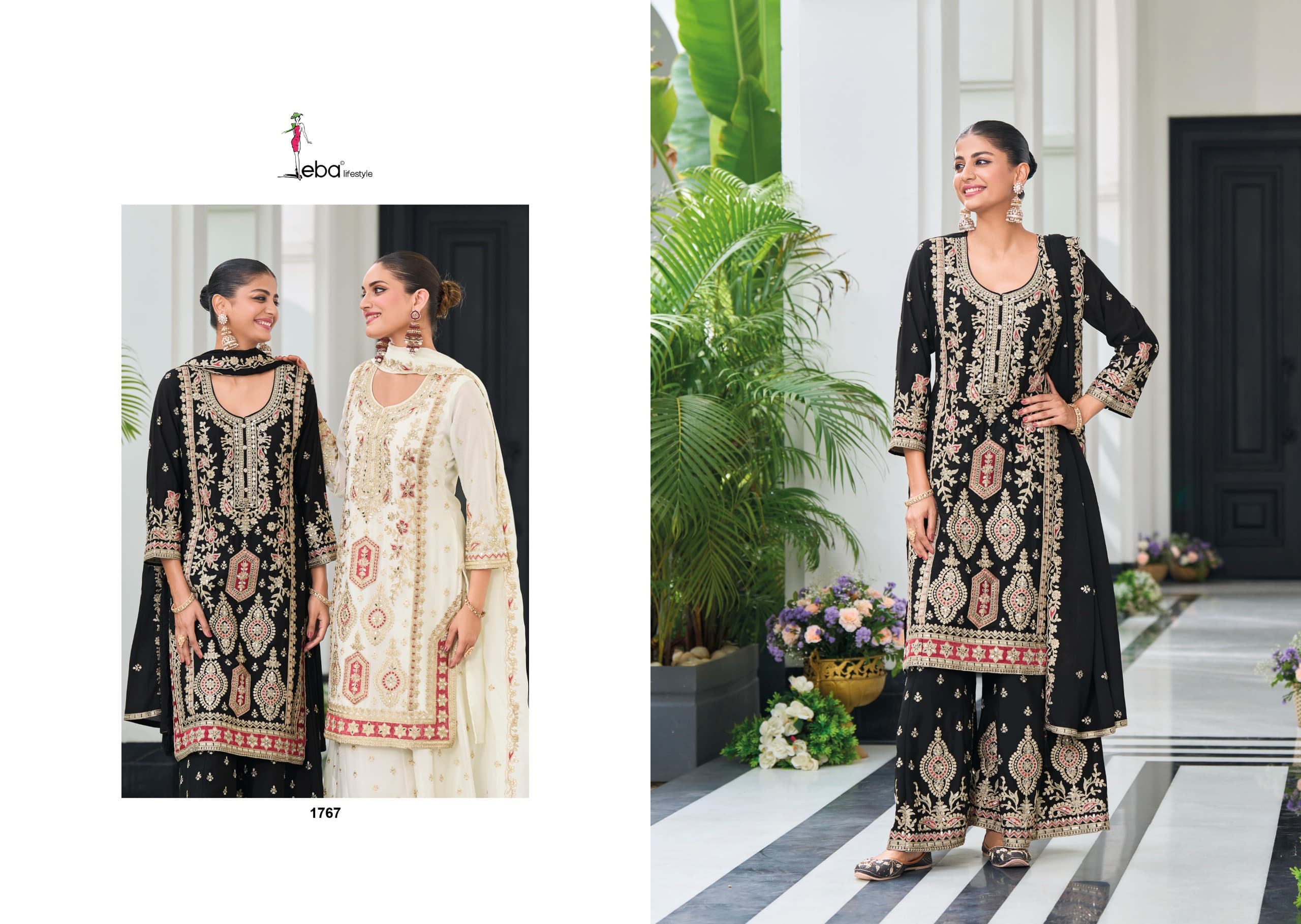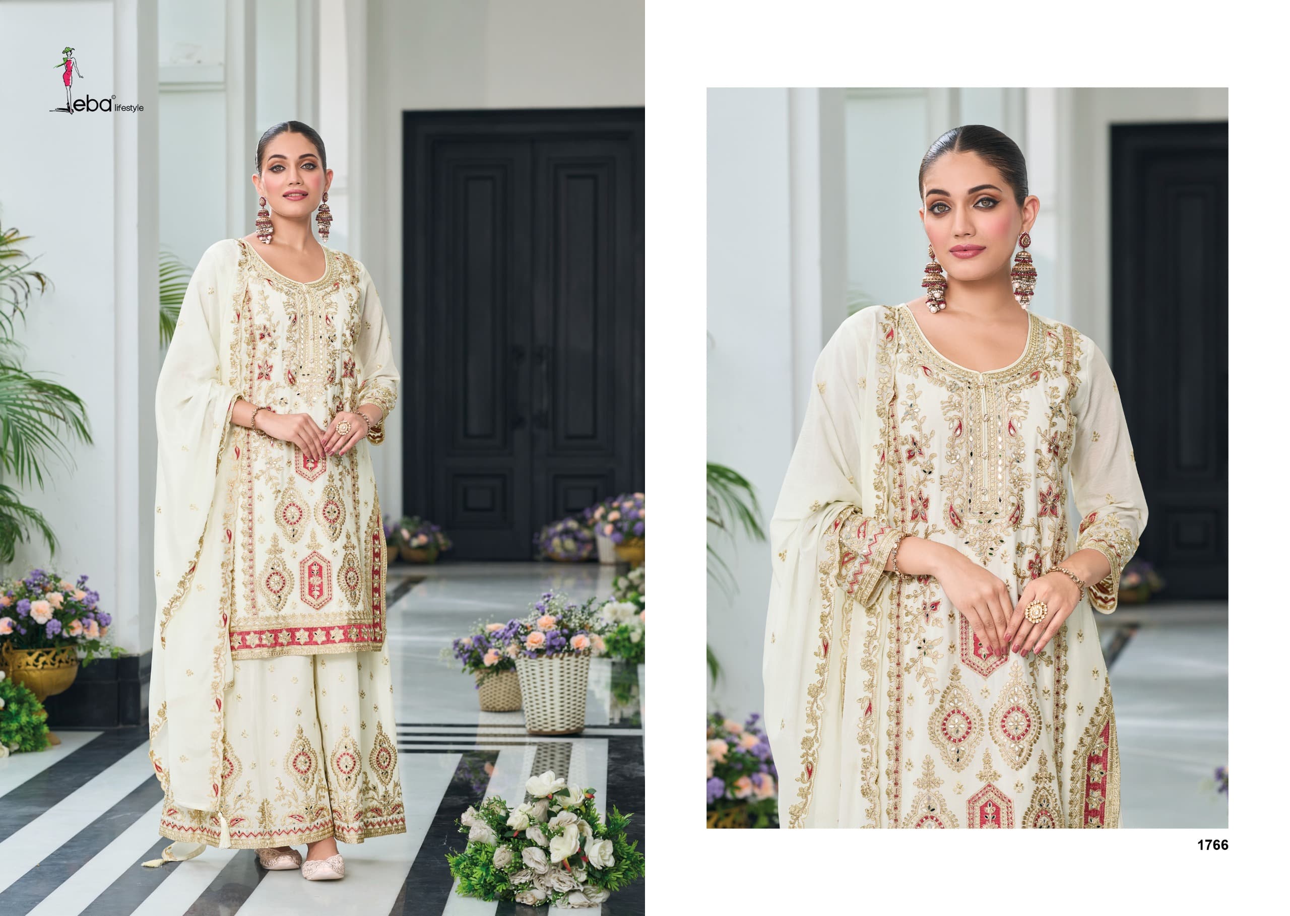 plazo - hevey Chinon with emboidery ( front & back work )