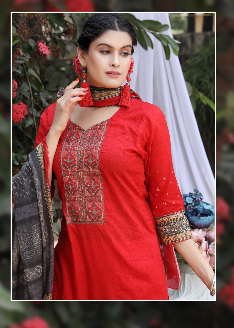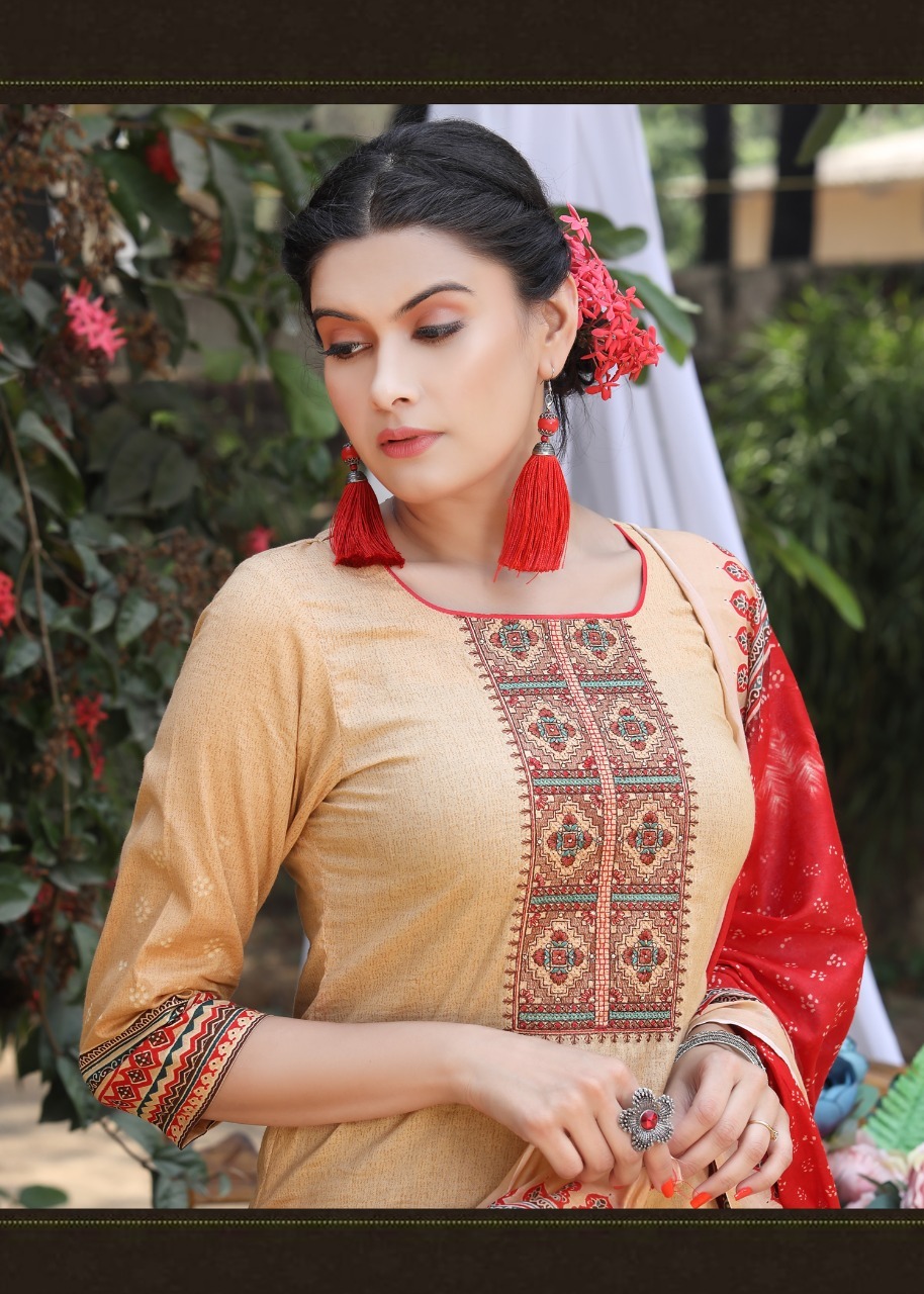 TOP FABRIC Heavy Lawn Cambric Cotton Print with Fancy Embroidery (“Approx 2.50 Mtr”)