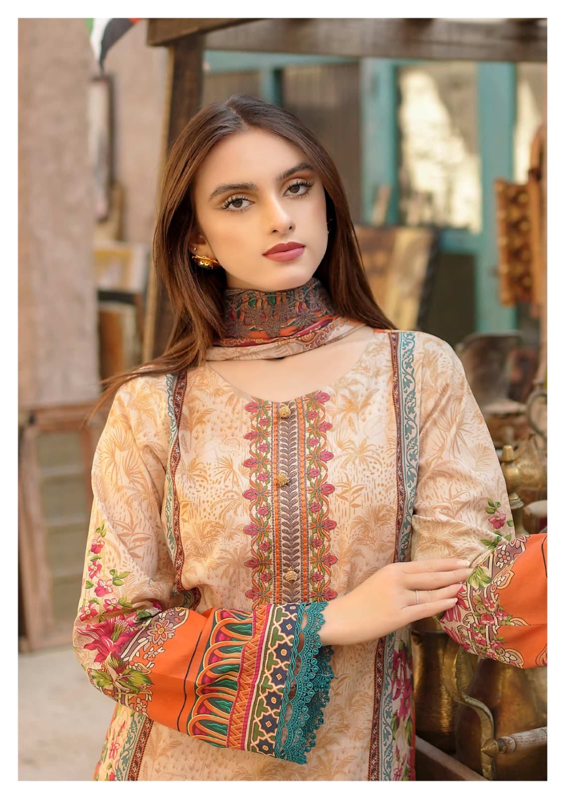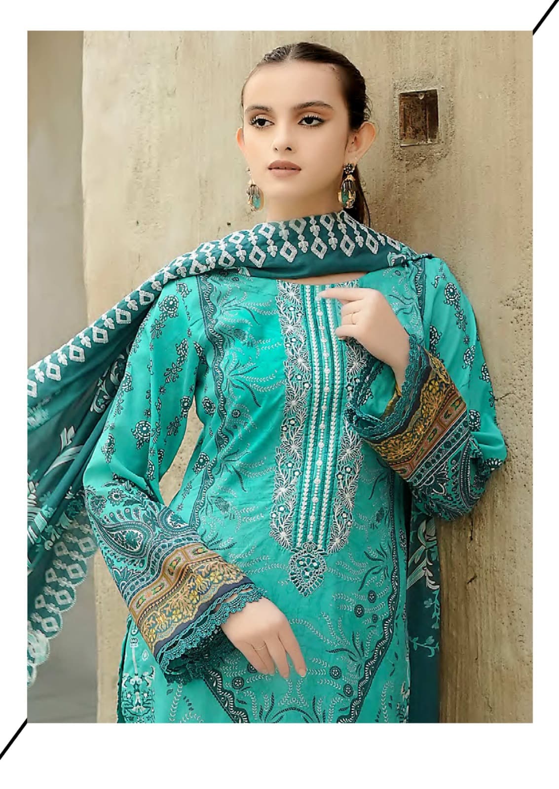 👗Top : Pure lawn (cut:2.40mtr) WITH NECK SELF EMBROIDERY 🧵