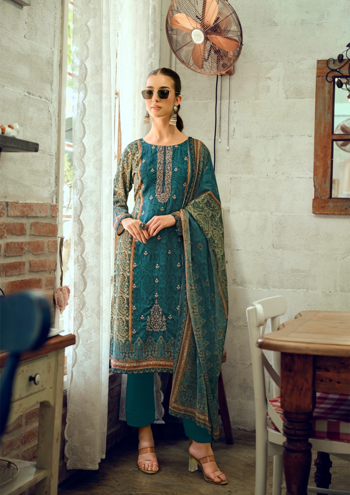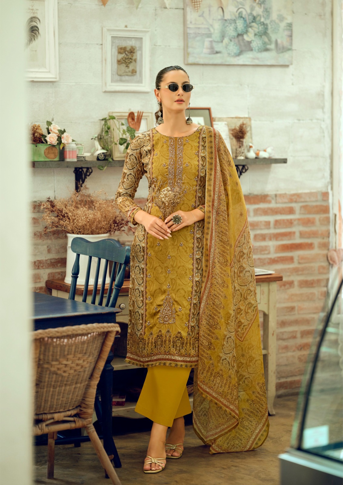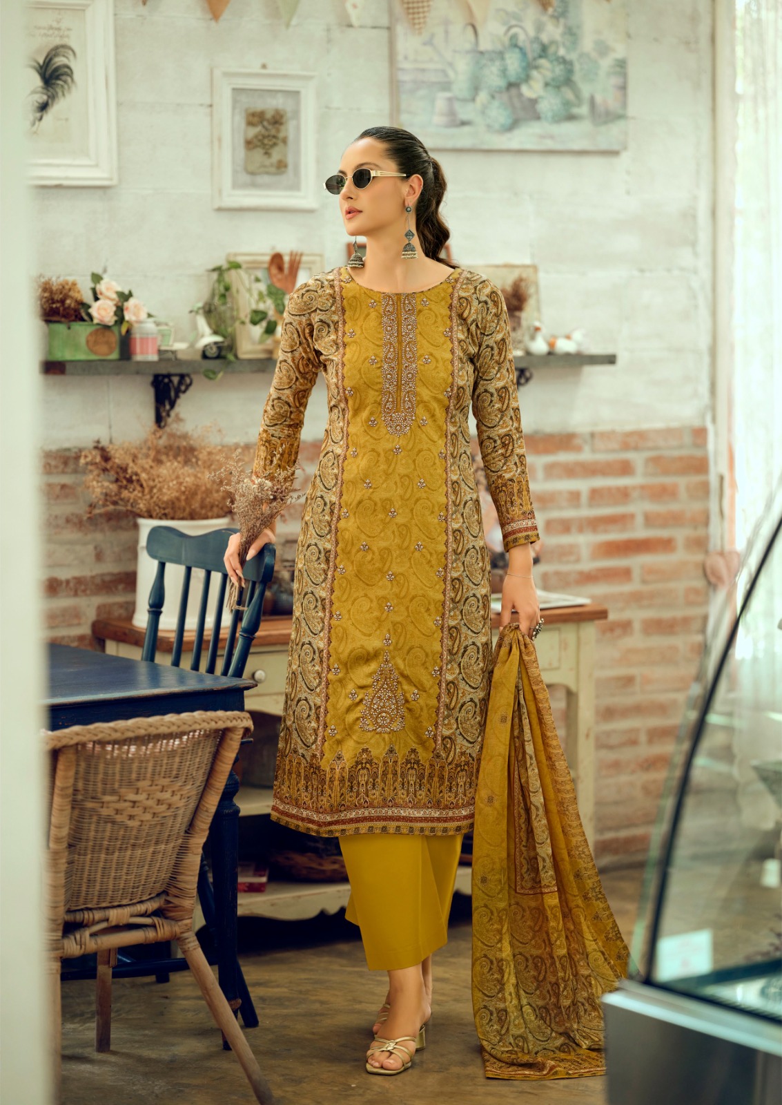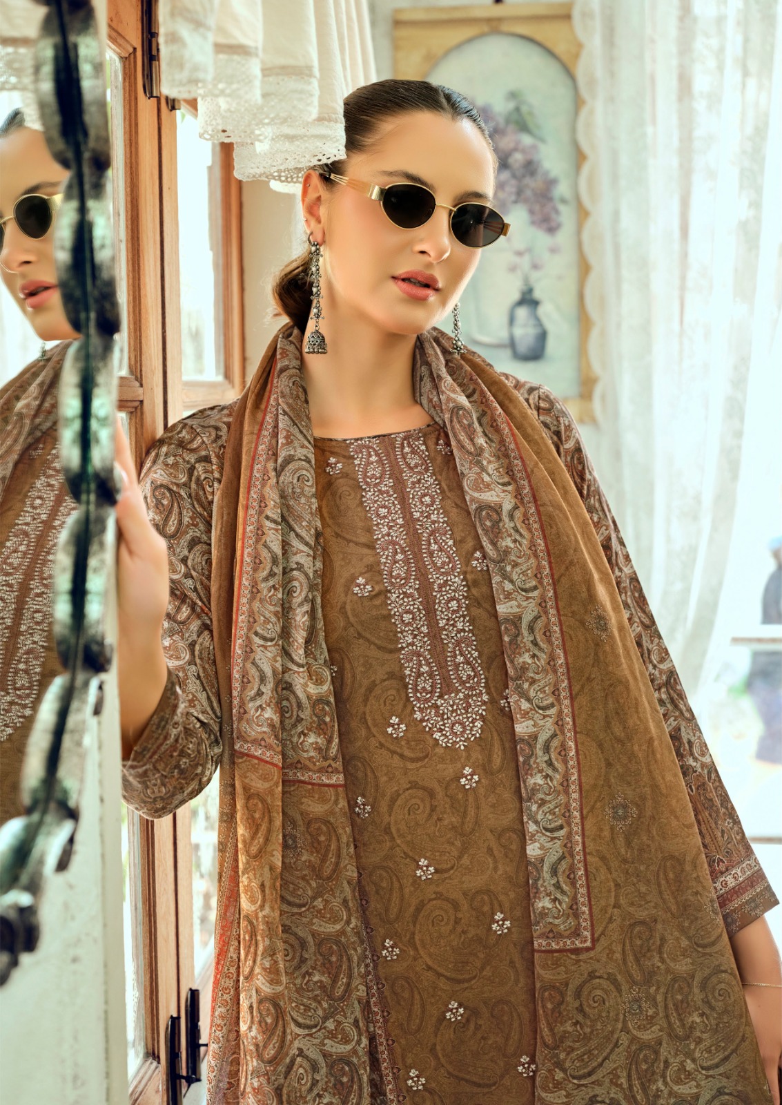 🔺TOP - PURE PREMIUM GIZA COTTON SATIN DIGITAL PRINTS WITH ALL OVER EMBROIDERY LONG LENGTH