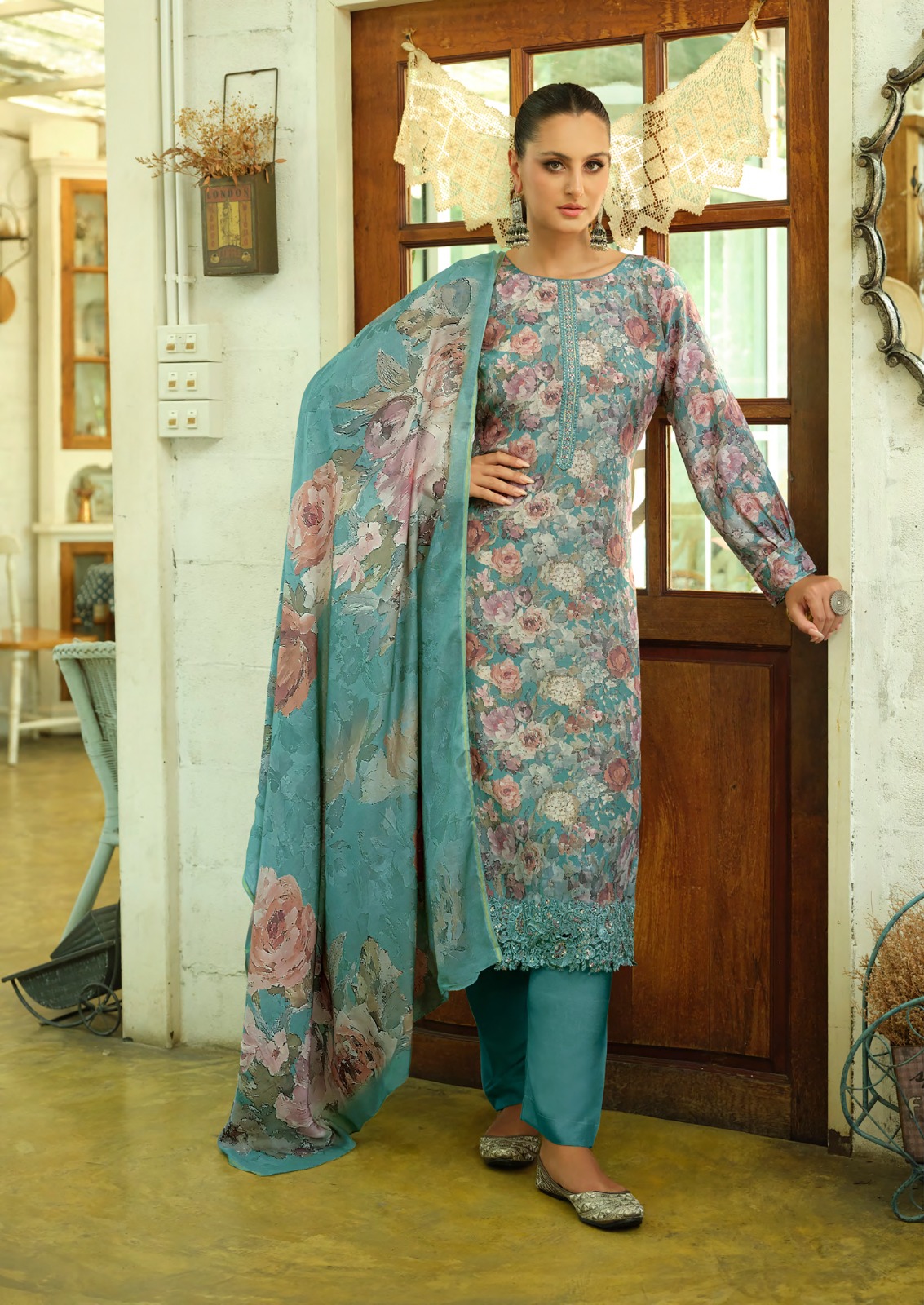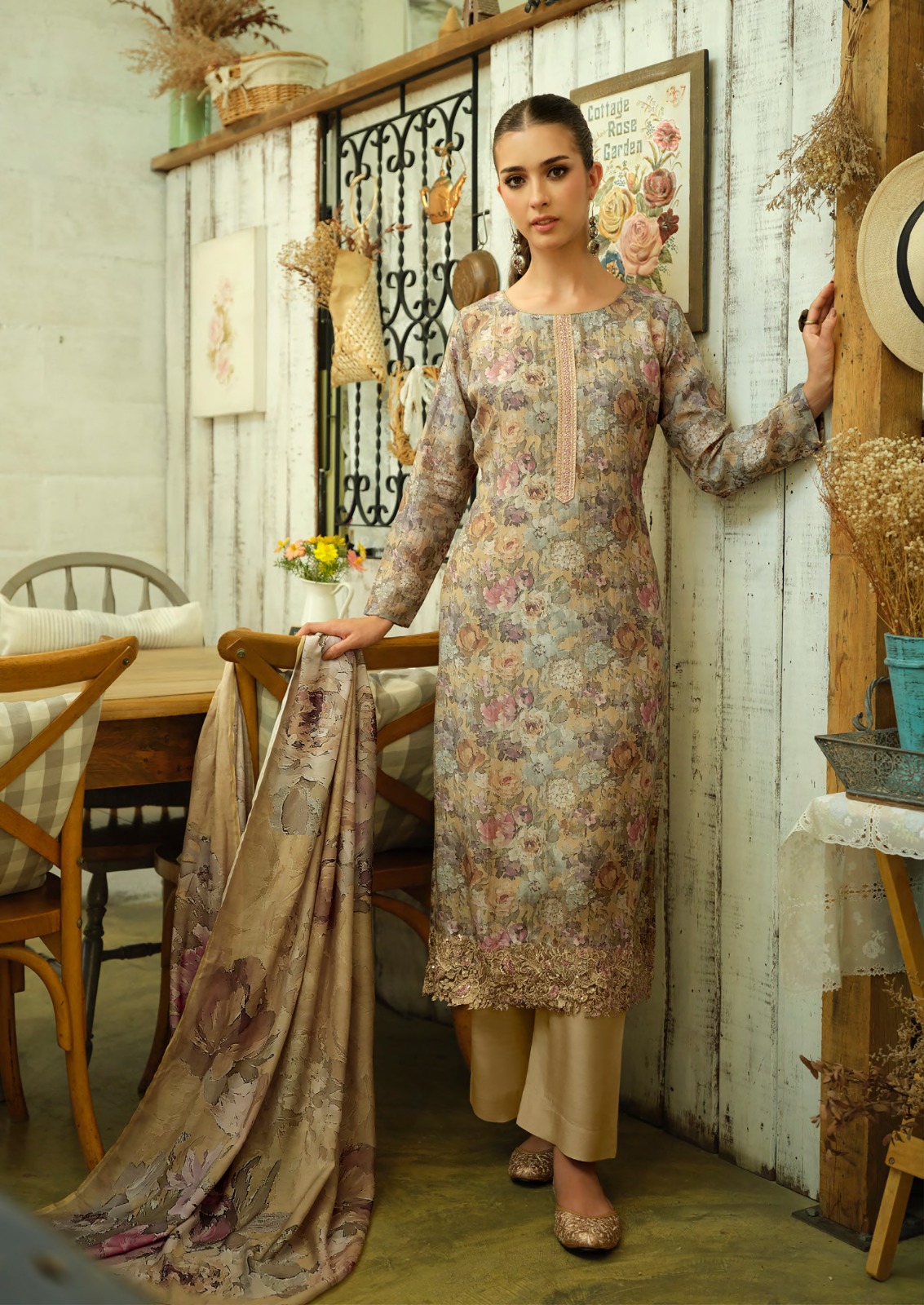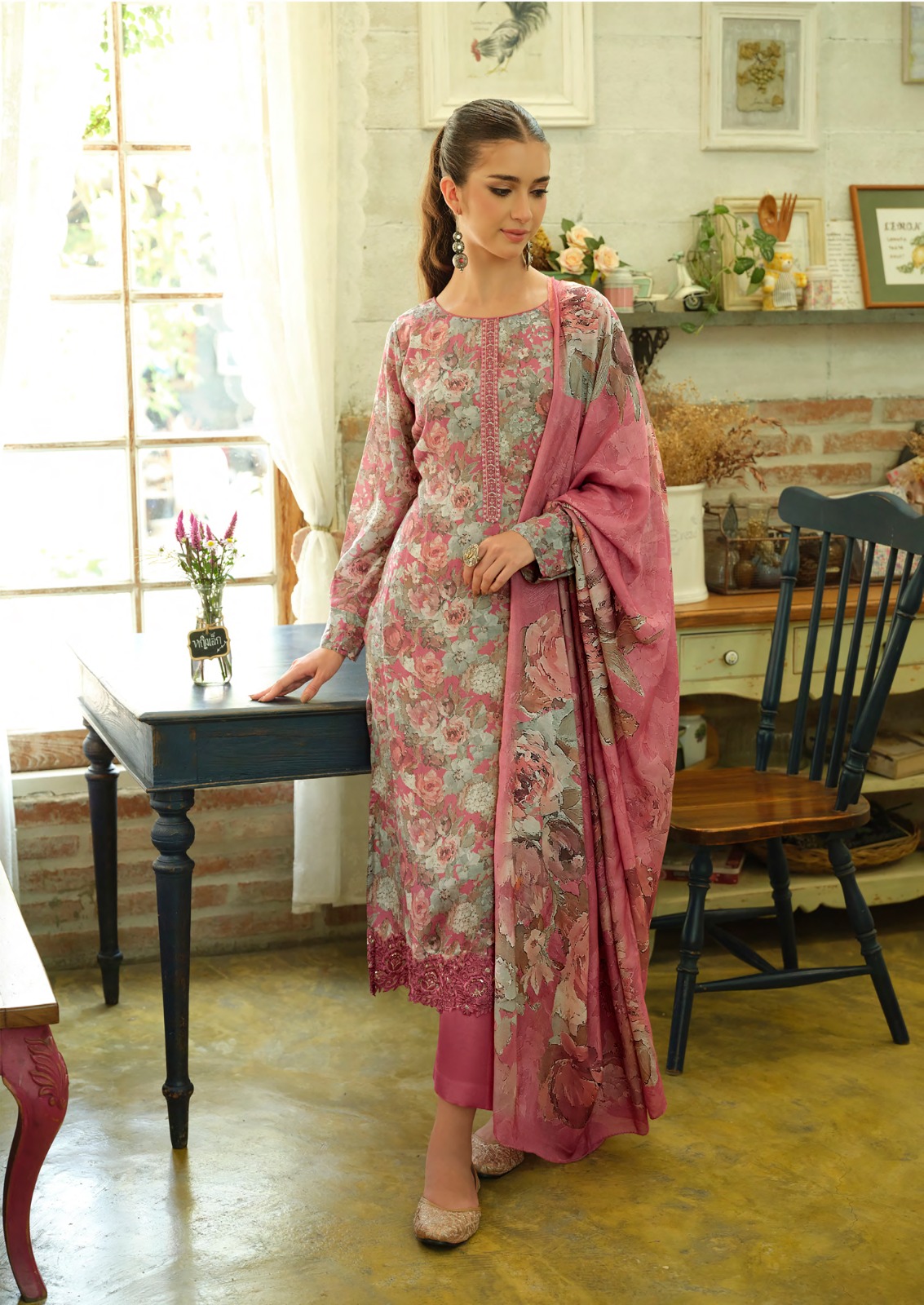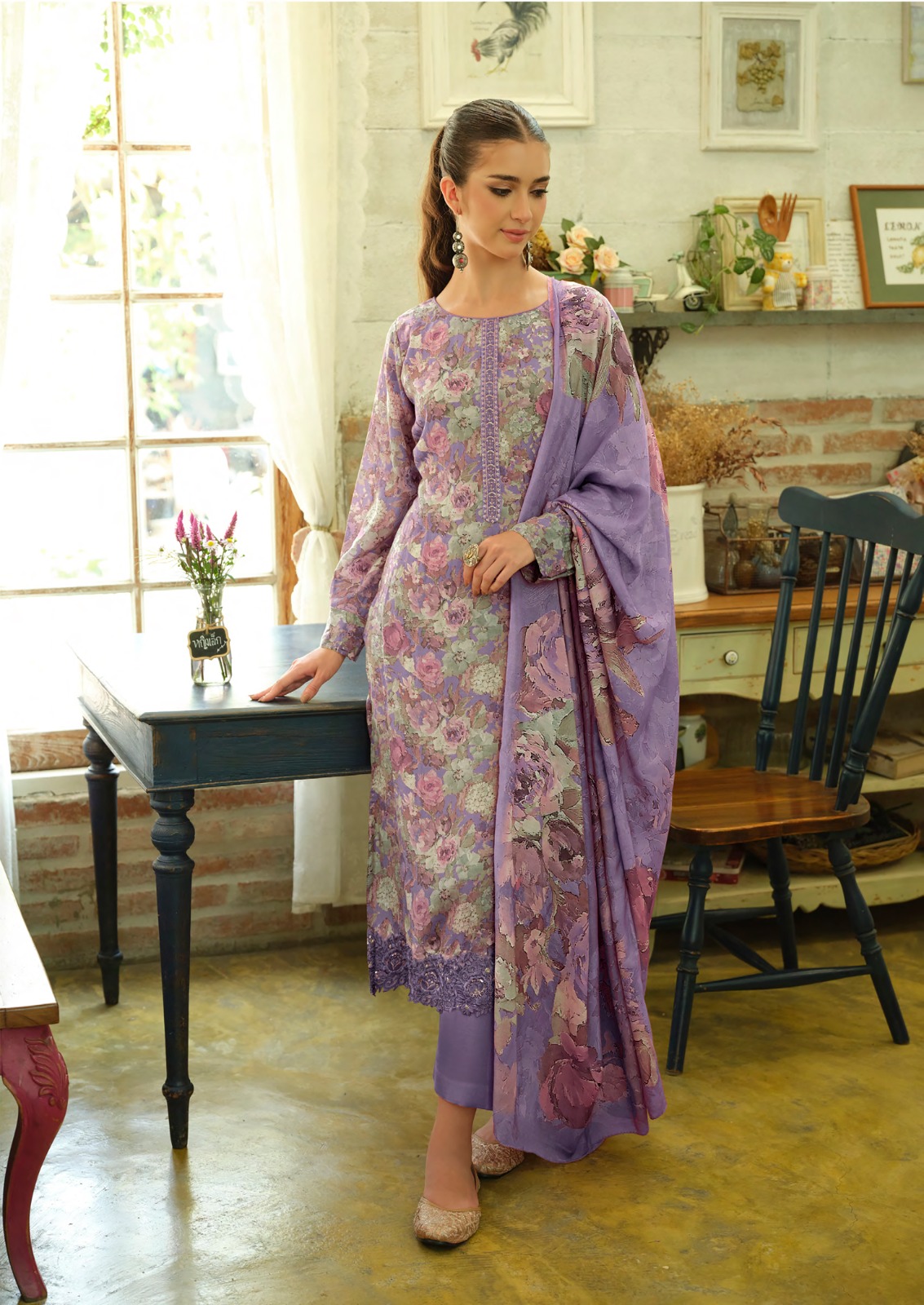 _🔺TOP - FINE FEATHER LIGHT LUSTRE LAWN COTTON DIGITAL PRINTS WITH HIGH STITCH EMBROIDERY_