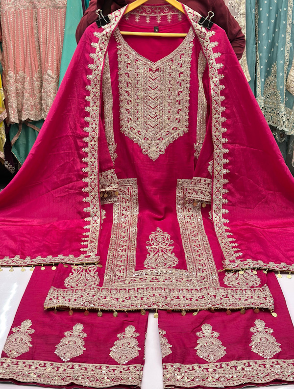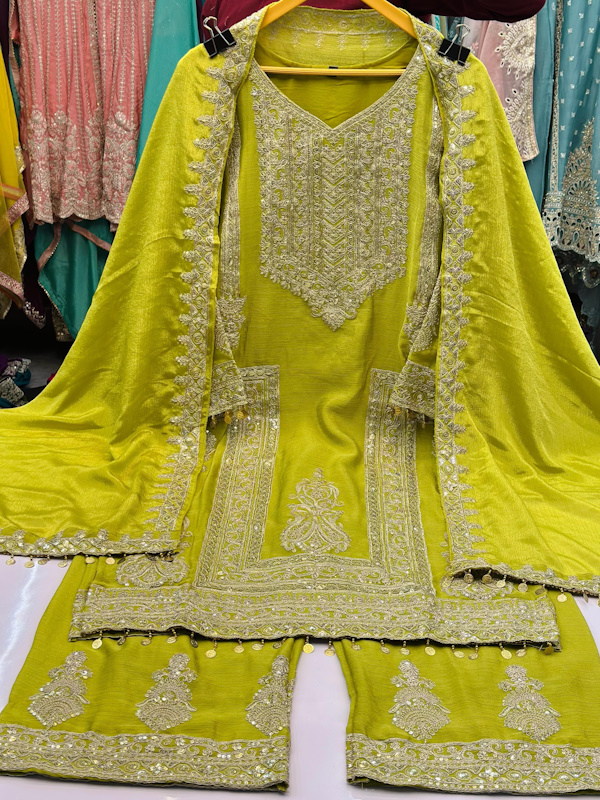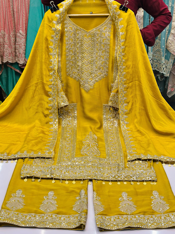 👖Bottom :- CHINON WITH HEAVY EMBROIDERY WORK