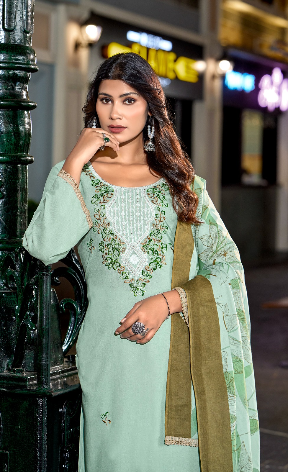 👚TOP: Rayon Printed With Sequence Embroidery Work And Lace ( 2.50mtr)
