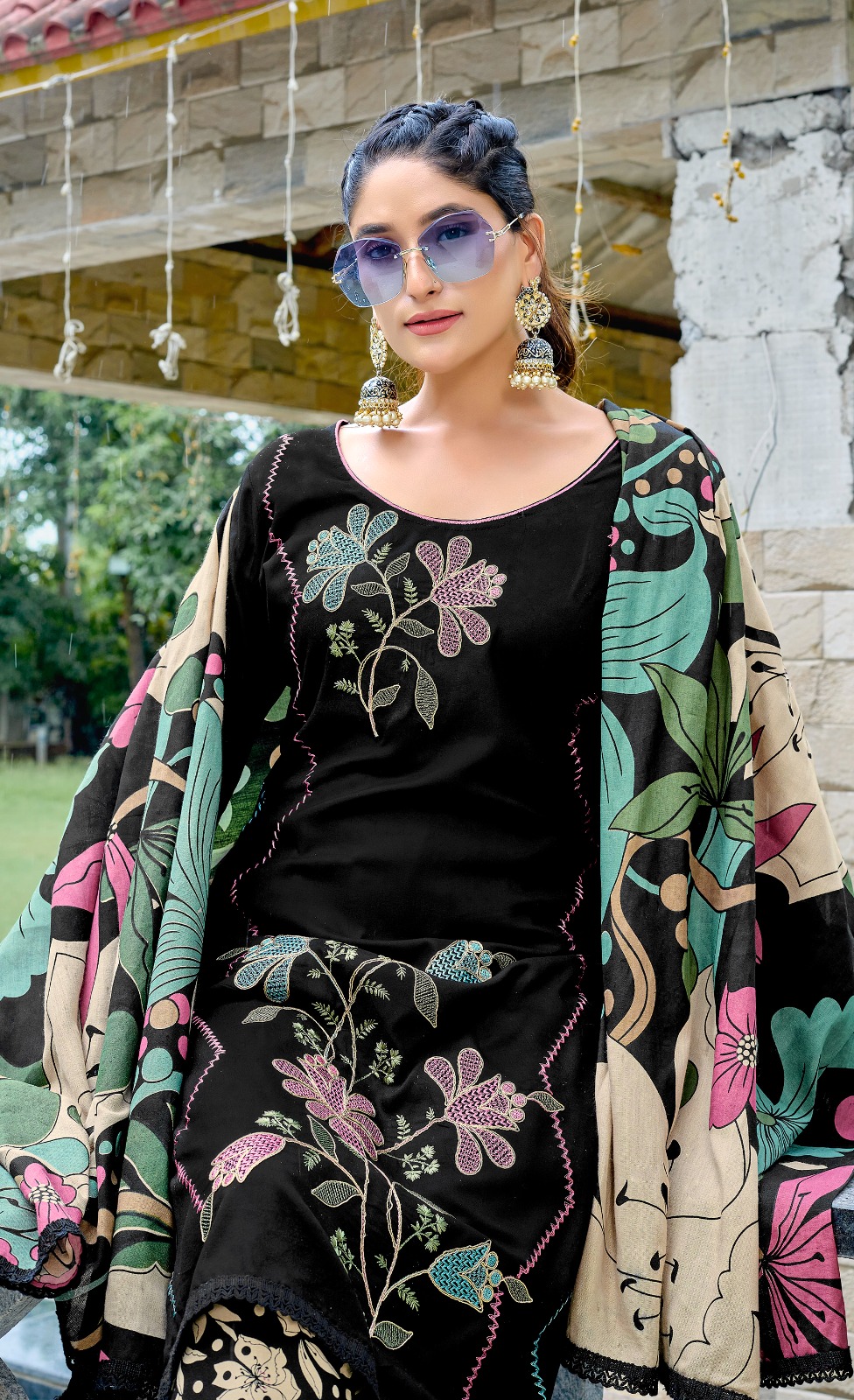 👚TOP: Rayon Fabric With coding Work And Daman Lace ( 2.50mtr)