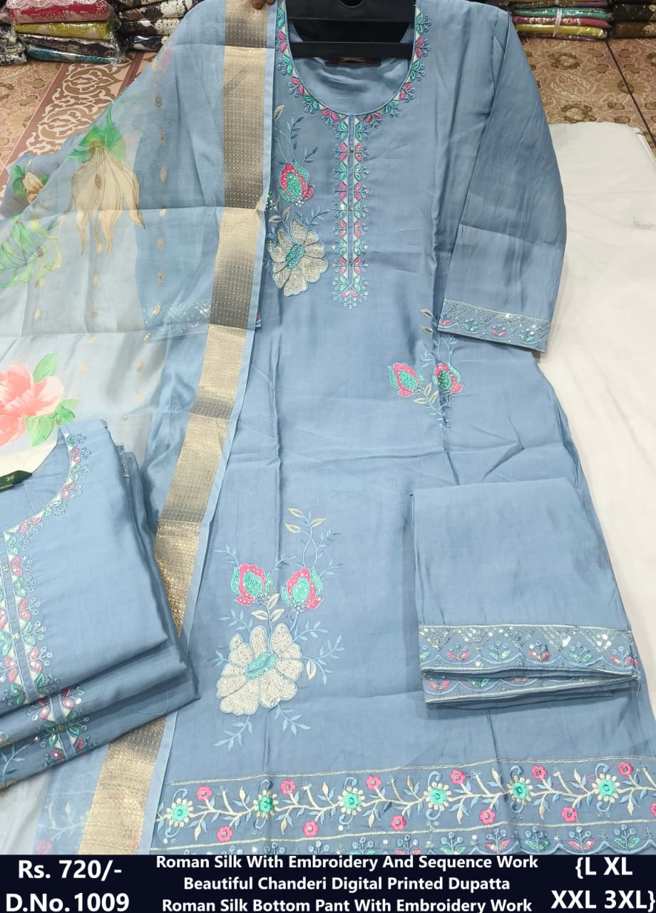 Rs. 720/- Top Roman Silk With Embroidery And Sequenc Work L XL XXL 3XL