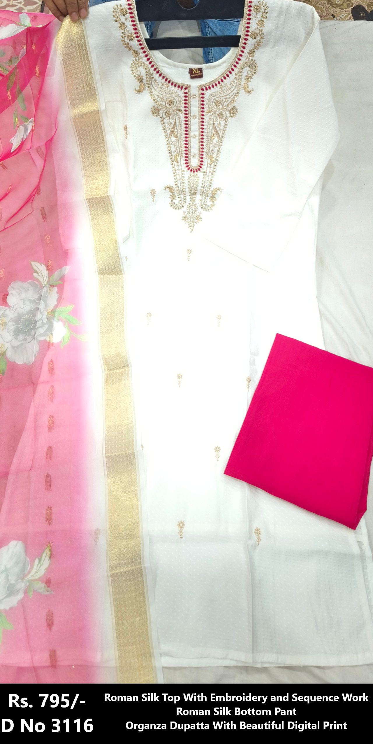 Rs. 795/- Roman Silk Top With Embroidery And Sequence Work M L