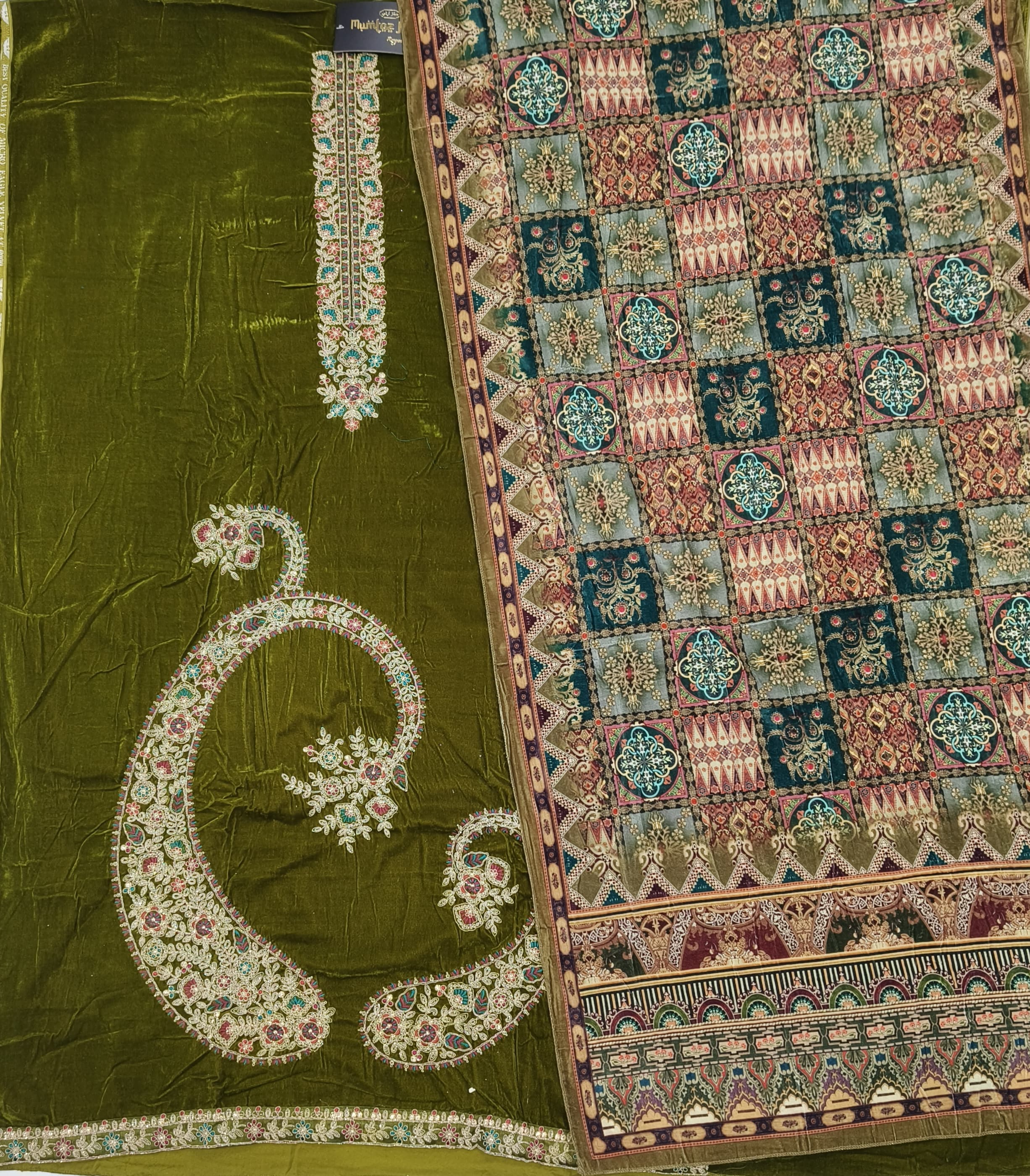 Dupatta: pure velvet digital print box pallu
