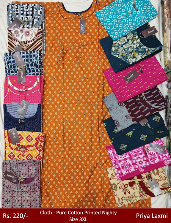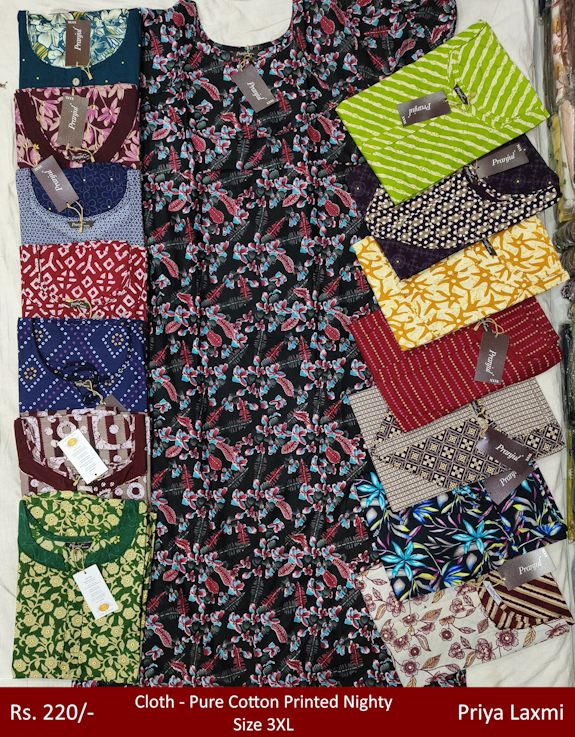 Rs. 220 Pure Cotton Printed Nightes priyalaxmi