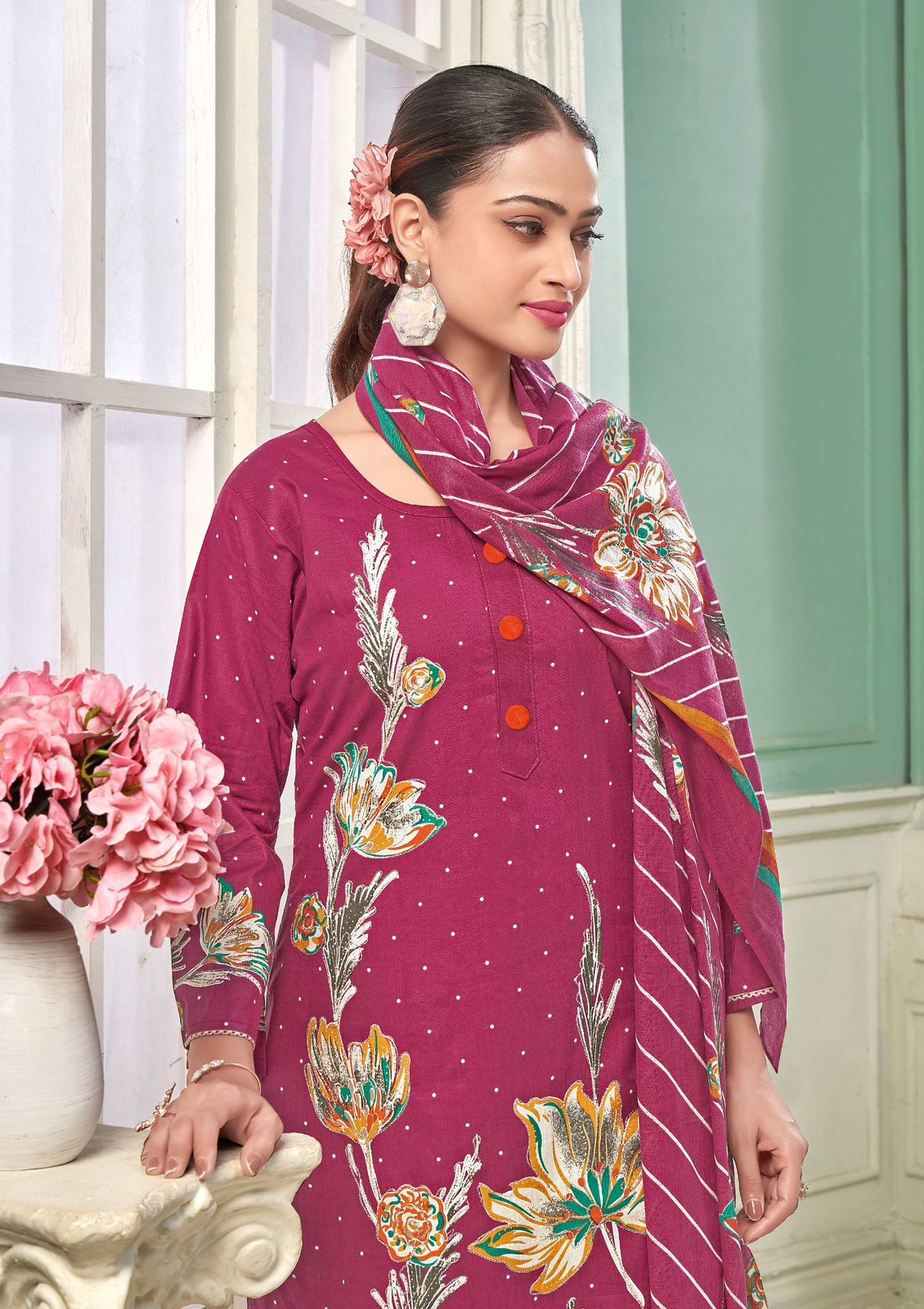 🧣:- 2:25( HEAVY COTTON DUPATTA WITH FANCY DISINE)