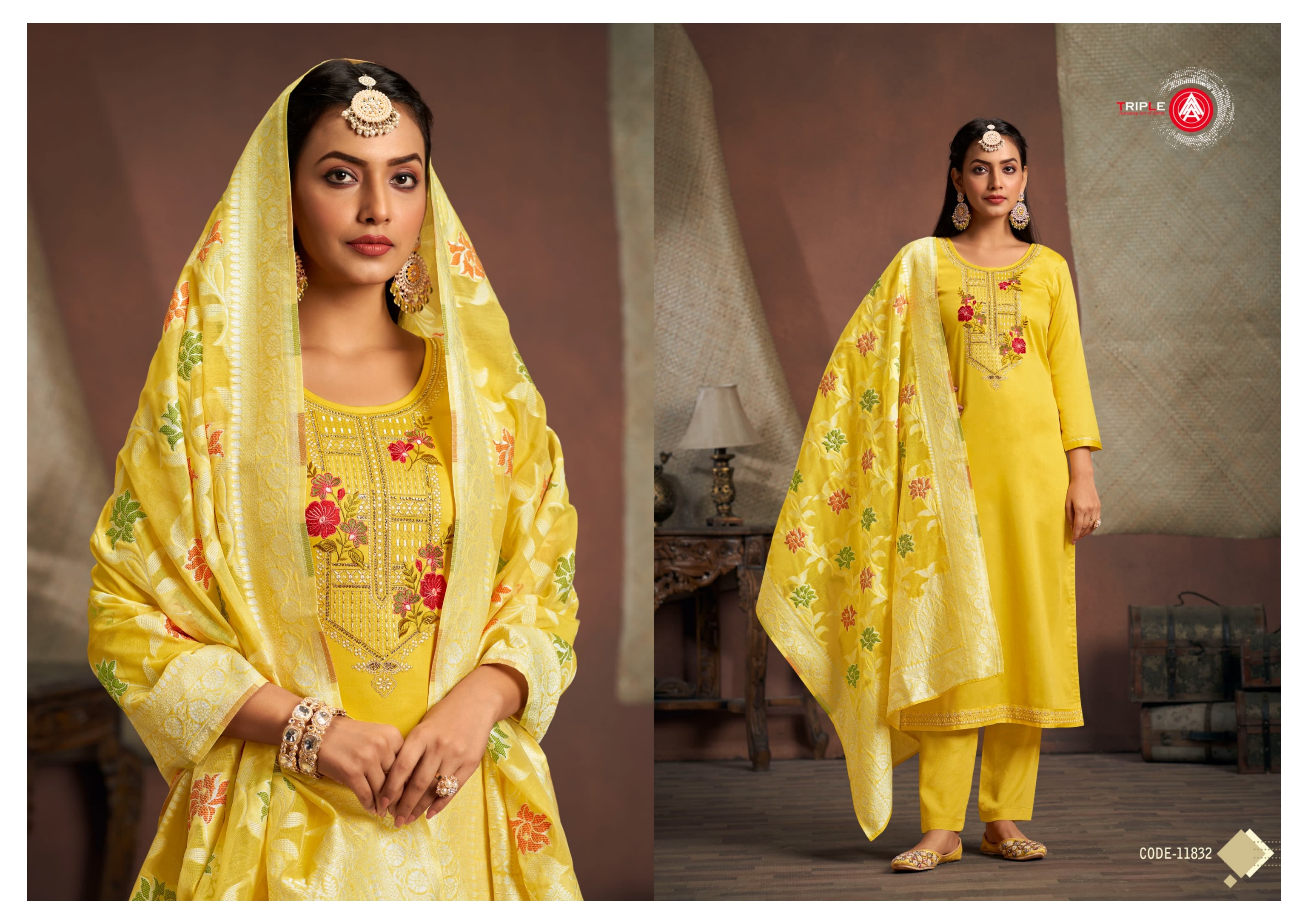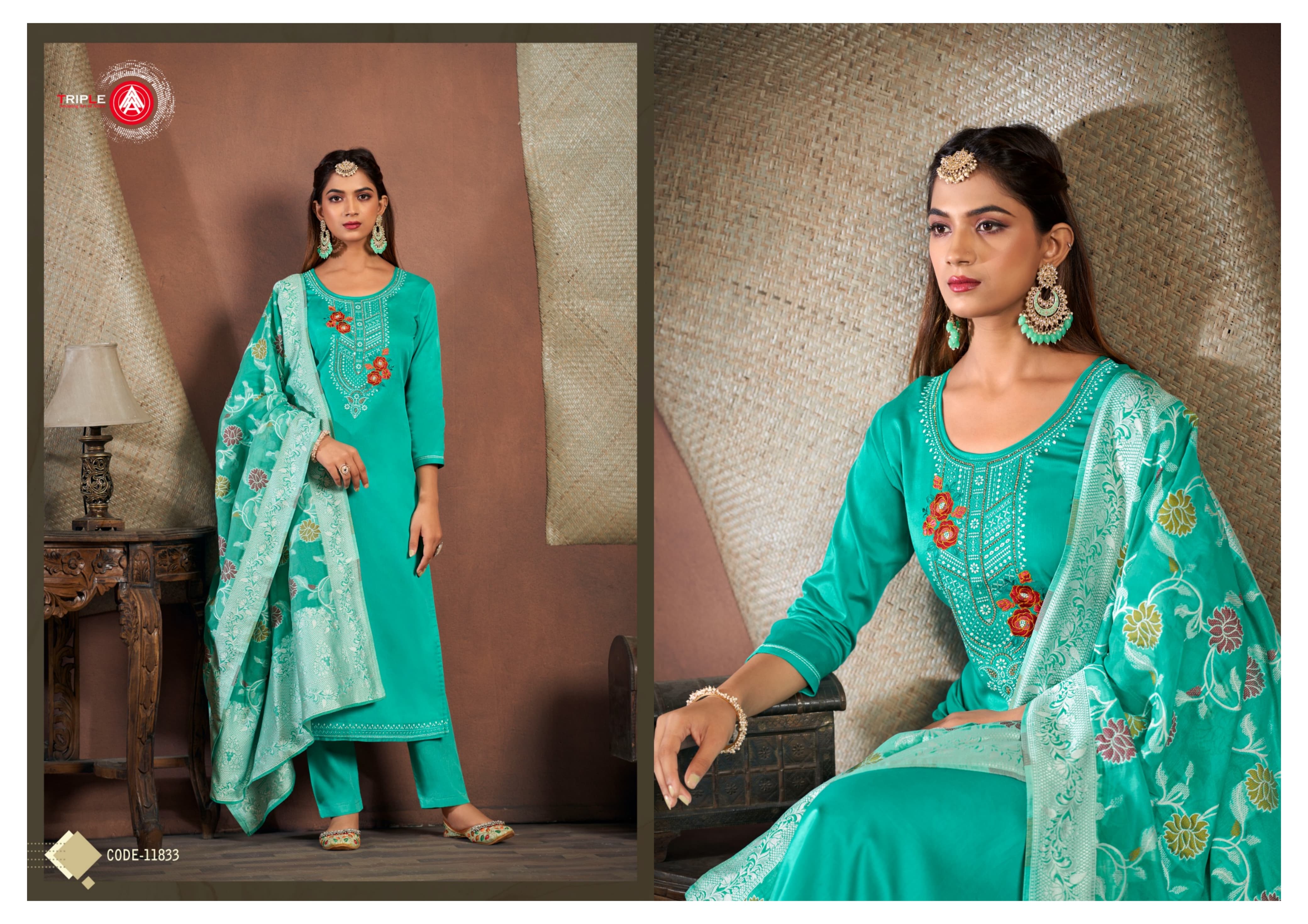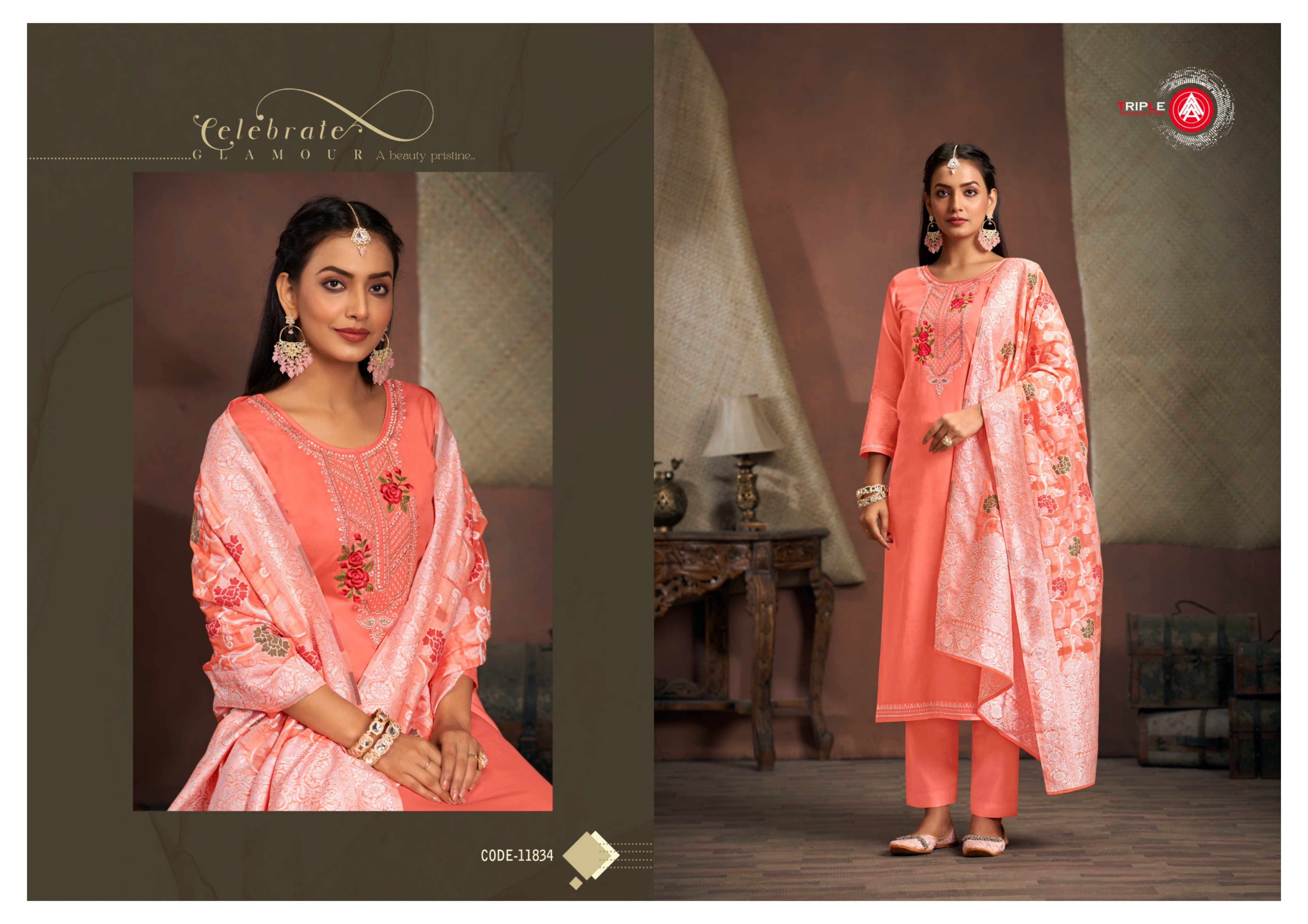 👚Top:- Jam Silk Cotton Work With Jarkan Work