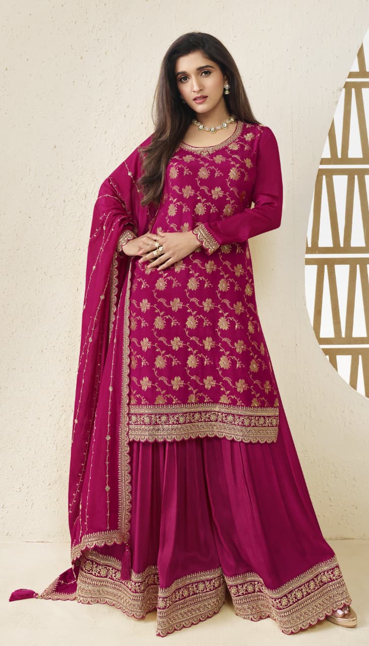 *EMBROIDERED VISCOSE CHINON JACQUARD TOP WITH EMBROIDERED CHINON BOTTOM & DUPATTA*