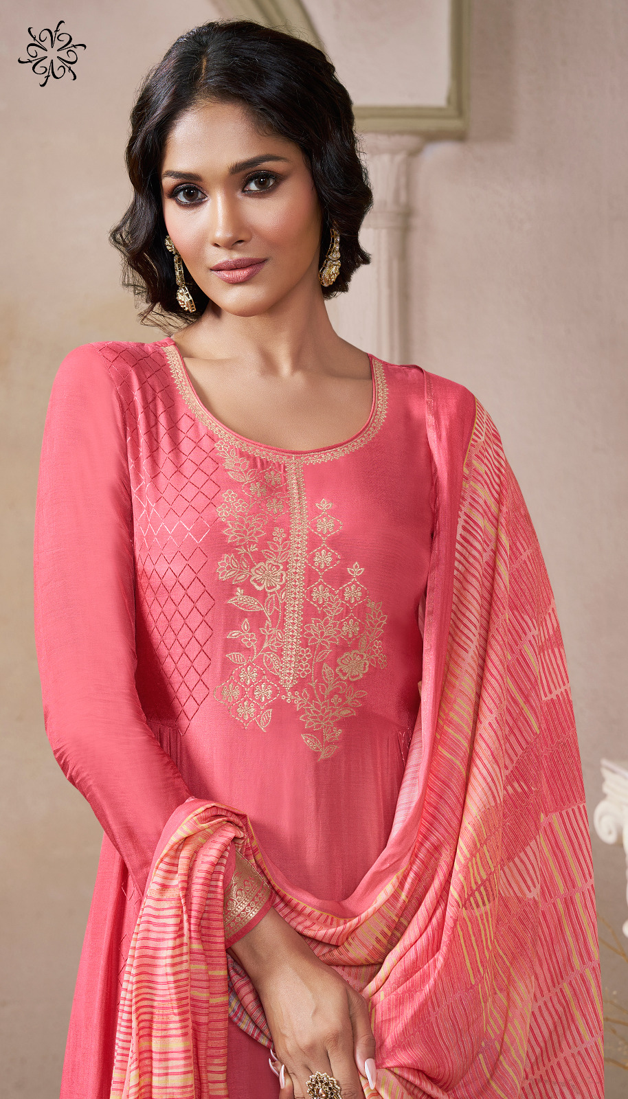 - Top/Kurta: Self-Weaved Viscose Machlin Jacquard – rich texture