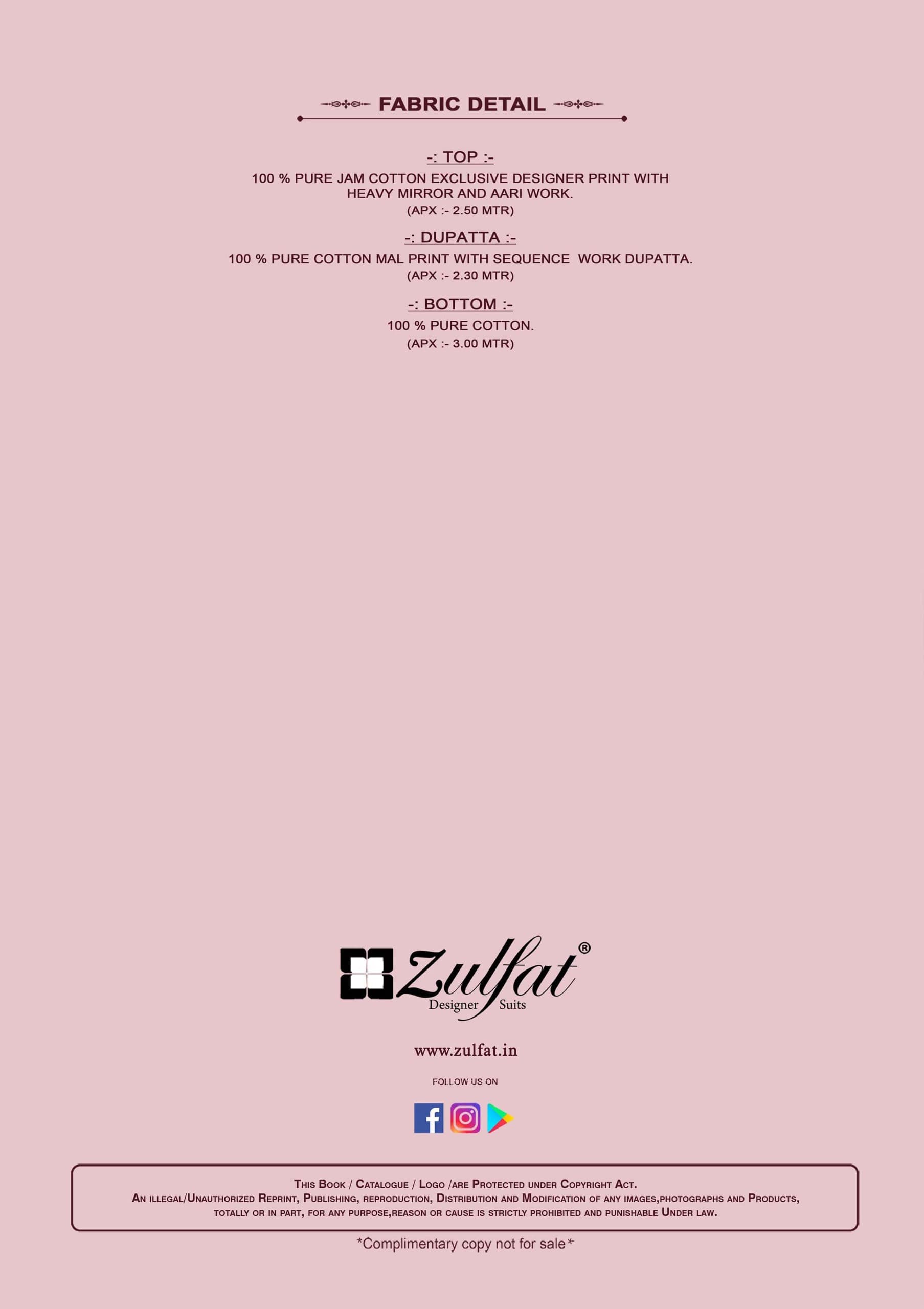 🔺Bottom: 100% Pure Cotton (3 mtrs apx)