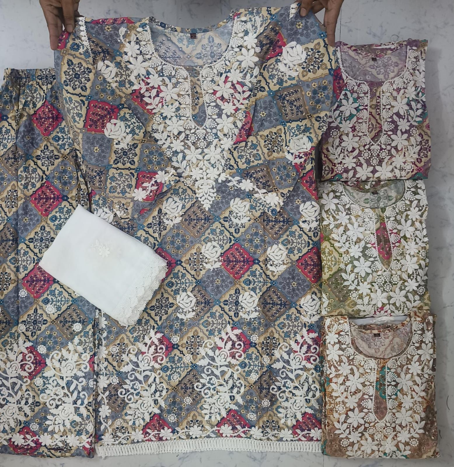 Nt Cotton Satin Print Chikan Kari